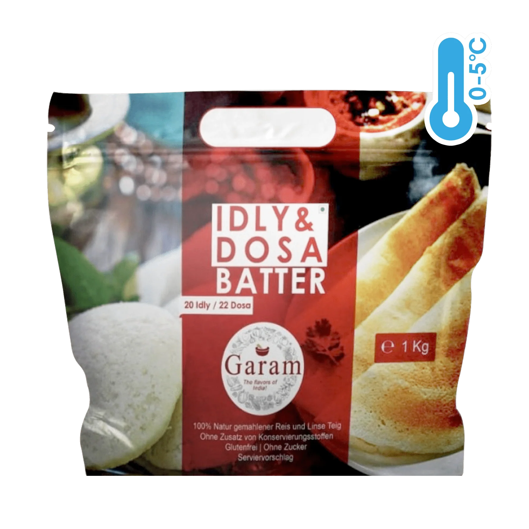 Rice flour, water, lentil flour, salt, fenugreek seeds. May contain traces of Gluten and Nuts.